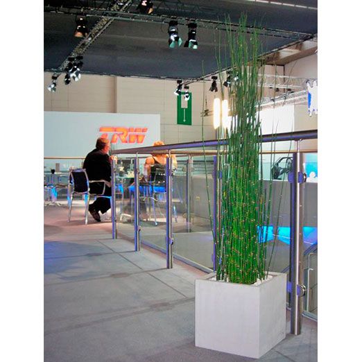Der Equisetum, oft auch Schachtelhalm genannt, ist die erste Wahl für Design-Liebhaber, die klare Linien und eine moderne, fast graphische Ästhetik suchen. Statt auf üppiges Blattwerk setzt diese Pflanze auf straff aufrechte, rohrartige Stängel, die eine faszinierende vertikale Struktur in jeden Raum bringen. Als eines der ältesten Gewächse der Erde wirkt er wie ein lebendes Fossil, das sich perfekt in minimalistische Architektur aus Beton und Glas einfügt. Mit einer Höhe von 1,50 Metern eignet er sich hervorragend als halbhoher Raumteiler oder um Wege und Wasserflächen stilvoll zu säumen, ohne die Sicht komplett zu versperren. Die leuchtend grünen, gegliederten Halme wirken aufgeräumt und puristisch, was für eine sehr ruhige und geordnete Atmosphäre sorgt. Da er immergrün ist, bleibt diese markante, architektonische Silhouette das ganze Jahr über erhalten. Wer den Equisetum mietet, setzt auf Design-Purismus und eine unverwechselbare, zeitlose Formsprache.