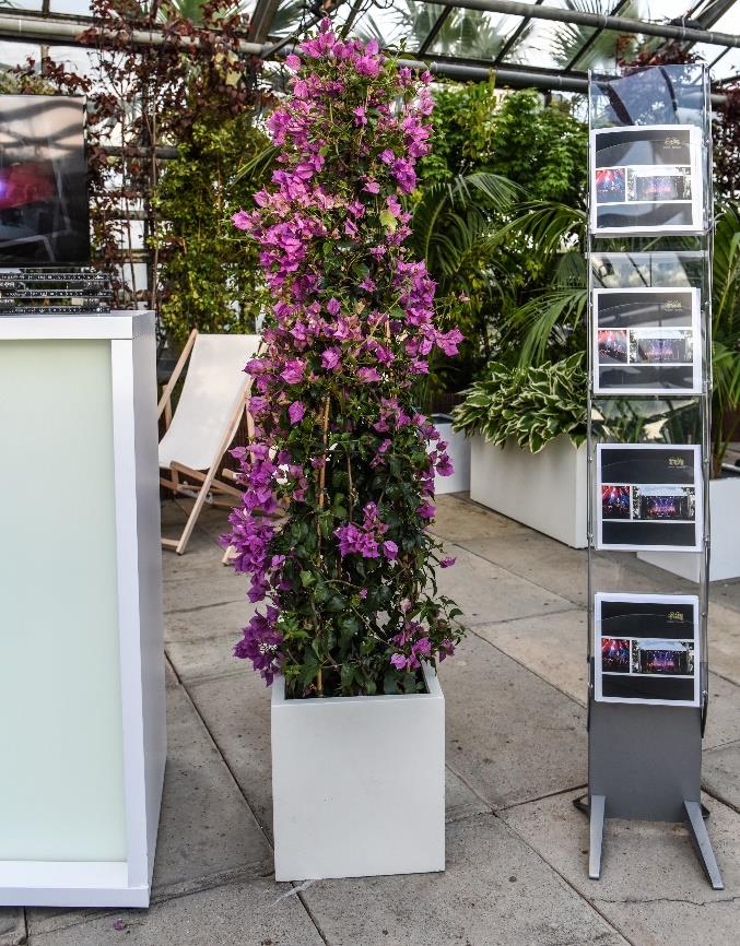Die Bougainvillea ist pure Leidenschaft in Pflanzenform und bringt wie kaum ein anderes Gewächs das intensive Lebensgefühl des Mittelmeers auf Ihr Event. Ihr Geheimnis sind nicht die eigentlichen kleinen Blüten, sondern die leuchtenden, papierartigen Hochblätter in kräftigem Pink, Violett oder Rot, die den Baum über Monate hinweg in ein spektakuläres Farbenmeer verwandeln. Mit einer Höhe von ca. 1,80 Metern ist sie ein idealer Blickfang auf Augenhöhe, der Gäste sofort mit einer warmen, exotischen Ausstrahlung empfängt. Sie eignet sich perfekt, um weiße Wände, Terrassen oder Festzelte mit einem kraftvollen Farbtupfer zu beleben. Anders als rein grüne Pflanzen sorgt sie für emotionale Wärme und versprüht den Charme einer spanischen Finca oder einer griechischen Taverne. Da ihre farbigen Hochblätter sehr lange halten, bleibt die optische Wirkung über einen langen Zeitraum stabil und eindrucksvoll. Wer die Bougainvillea mietet, entscheidet sich für Temperament und sommerliche Exotik, die garantiert in Erinnerung bleibt.